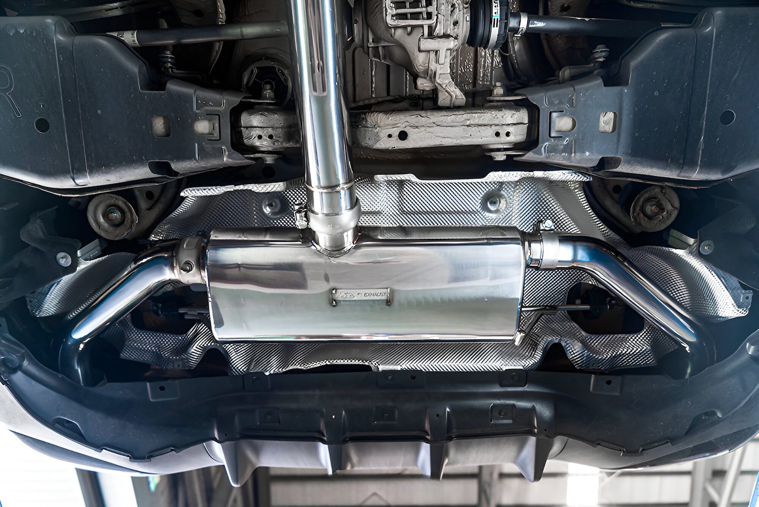 Ключові особливості: Система покращує як звучання, так і продуктивність, забезпечуючи захоплюючий звук вихлопу. Спроектована з передовою технологією valvetronic, Fi EXHAUST оптимізує потік повітря, регулює гучність звуку та збільшує крутний момент. Повна система здатна збільшити потужність на приблизно 5-10% з valvetronic catback та ультра високопропускним downpipe.